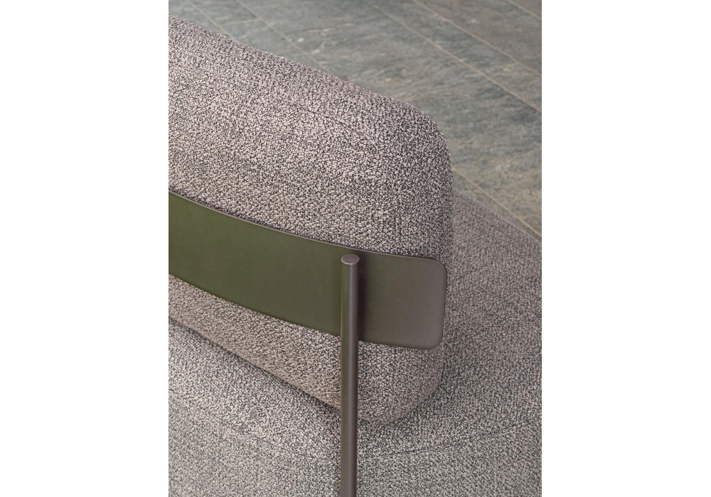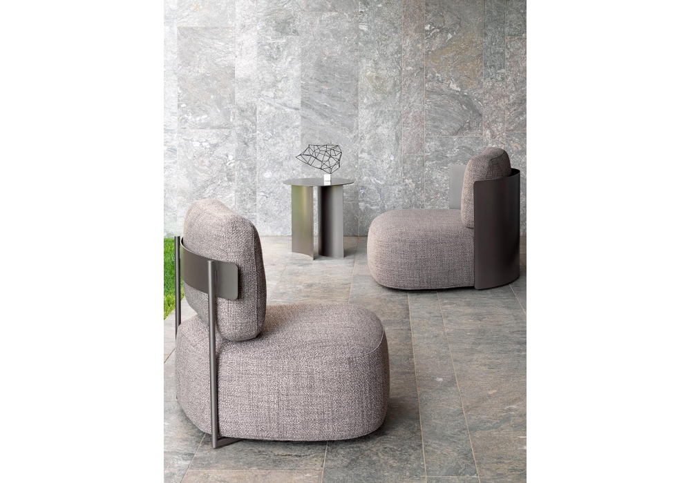 Pierre conçu par Studio Contromano pour Flou est un petit fauteuil avec dossier tubulaire en métal dans les couleurs anodic bronze, bruni mat, oxide, noir, grège, blanc, magma et océan. Siège rembourré avec revêtement amovible en tissu ou en cuir. Disponible en deux tailles.