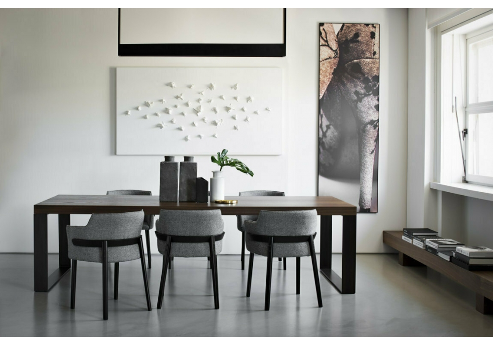 Pince conçu par Lucidi Pevere pour Gebrüder Thonet Vienna est un fauteuil avec structure monocoque, insert en acier et rembourrage en polyuréthane souple expansé à froid, revêtement en tissu ou en cuir. Pieds et dossier en frêne courbé disponible en différentes finitions.