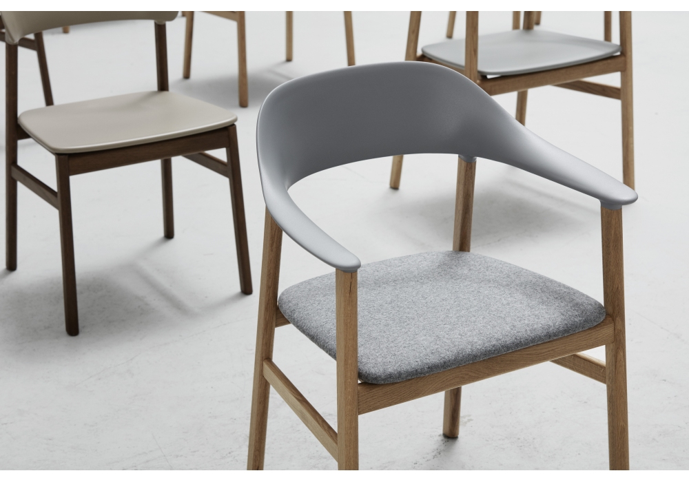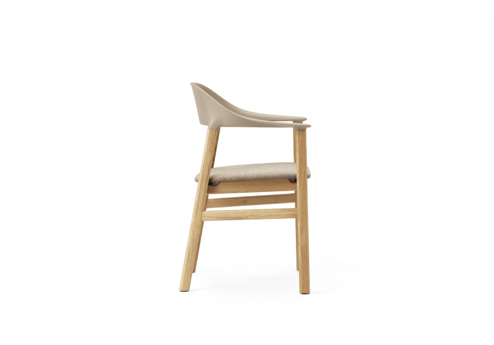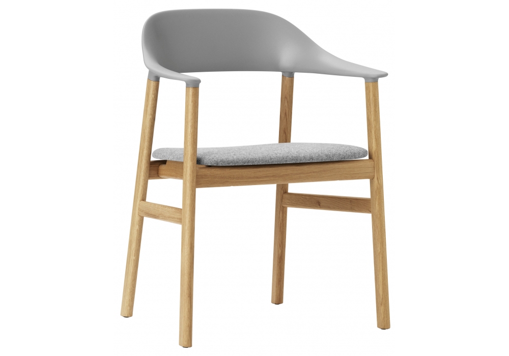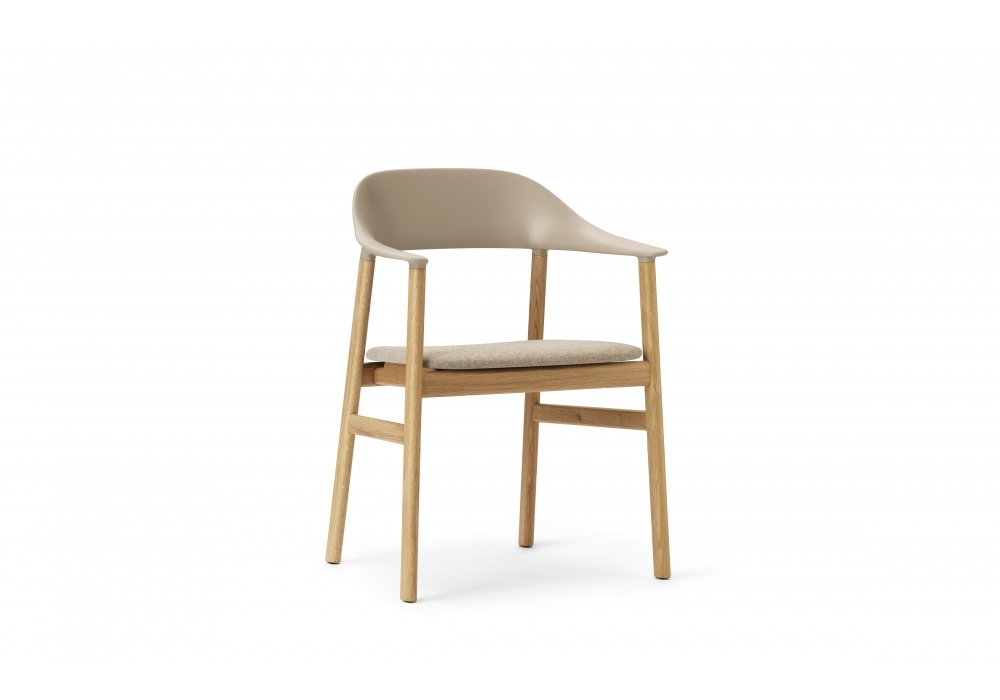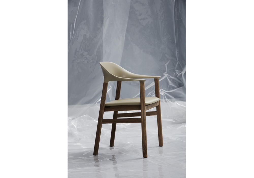 Herit, conçu par Simon Legald pour Normann Copenhagen, est un fauteuil, structuré en chêne avec dossier en polypropylène et assise recouverte de cuir ou de tissu en différentes finitions. Herit est disponible en deux versions différentes, avec structure et pieds en chêne ou en chêne fumé.