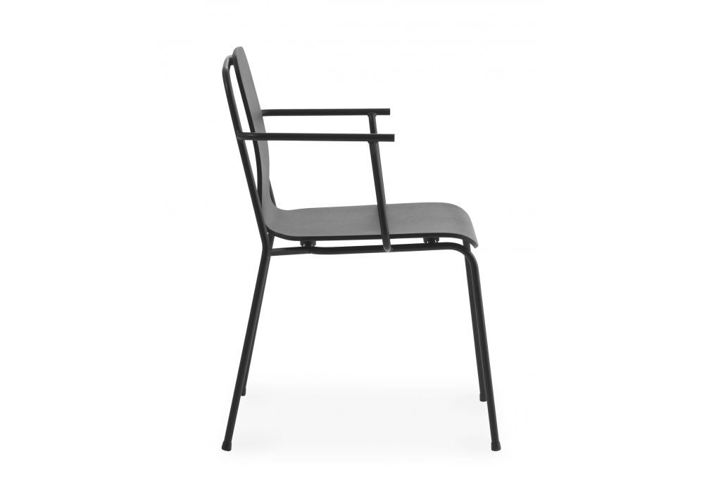 Studio, conçu par Simon Legald pour Normann Copenhagen est un fauteuil, avec assise et dossier modelés à partir d'un seul corps en chêne, et structure en acier tubulaire. Studio est disponible en différentes finitions en bois laqué.