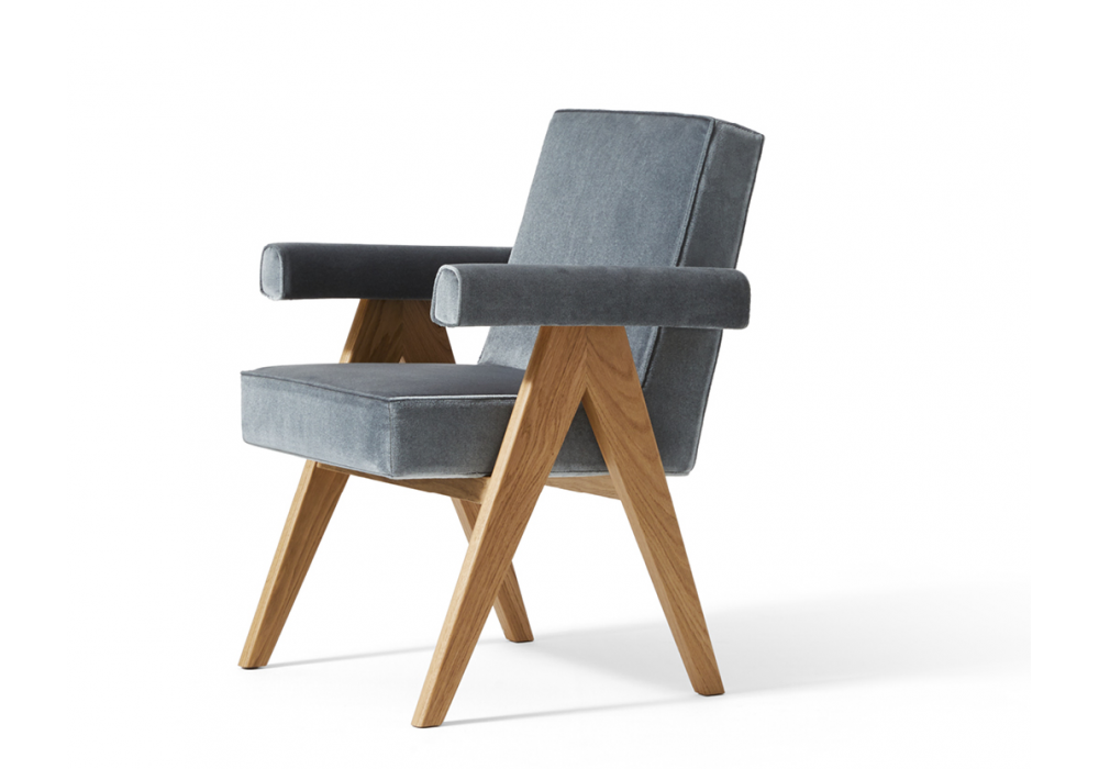 Committee Chair conçu par CRS Cassina-Hommage À Pierre Jeanneret pour Cassina est un petit fauteuil réalisé avec structure en bois massif et dossier et assise rembourrés en tissu ou cuir. Disponible avec ou sans accoudoirs.