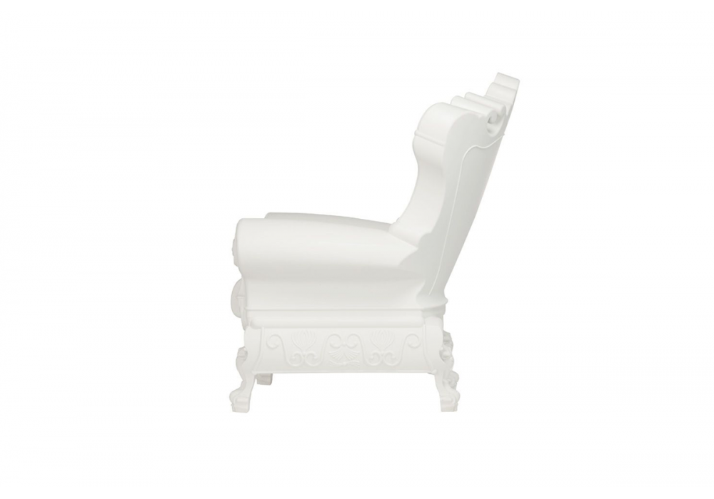 Little Queen of Love conçu par Graziano Moro & Renato Pigatti pour Slide est un fauteuil caractérisé par des détails et des finitions de style rococo. Disponible en différentes finitions