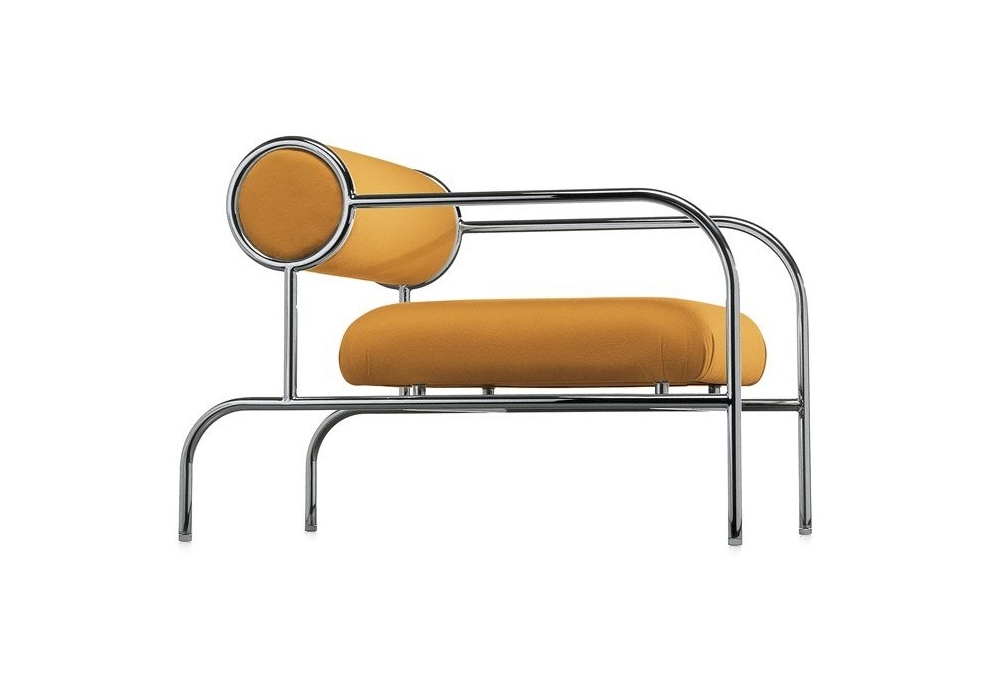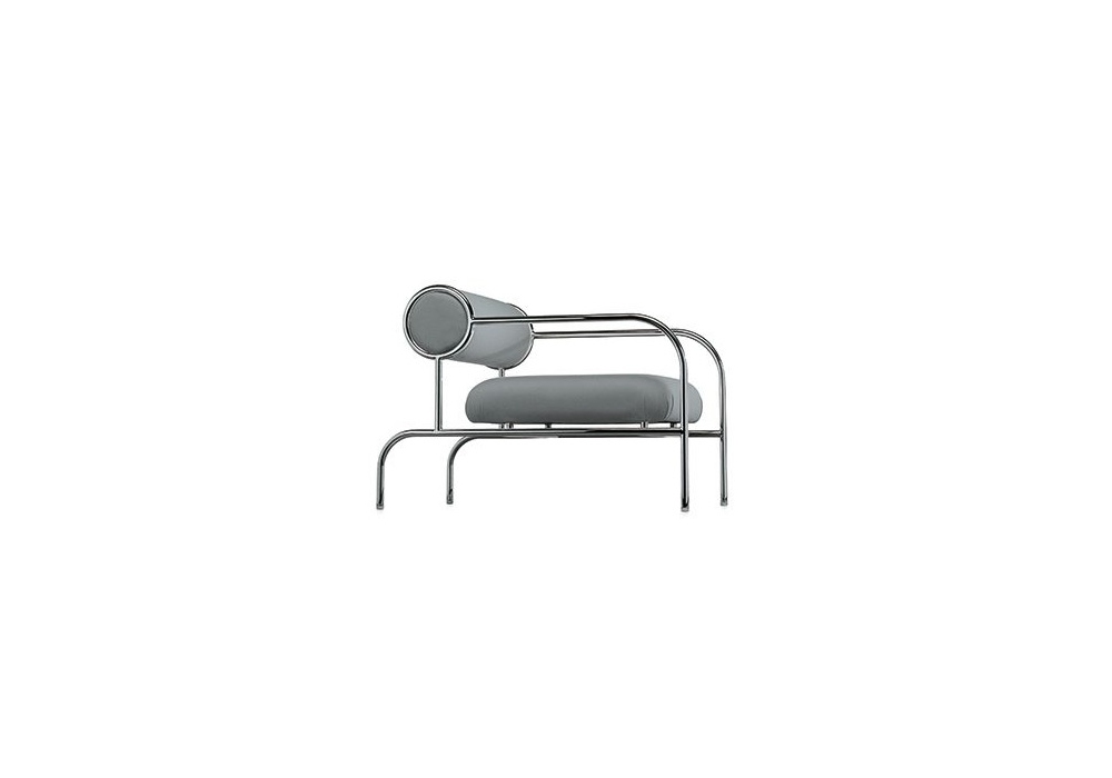 Sofa with Arms conçu par Shiro Kuramata pour Cappellini est un petit fauteuil avec structure tubulaire en métal et assise et dossier rembourrés, avec revêtement fixe en tissu ou cuir.
