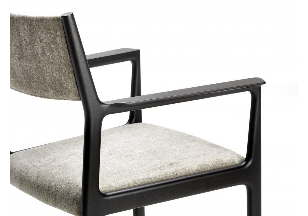 Lisa conçu par Draw Studio pour Ceccotti Collezioni est un petit fauteuil avec structure en noyer ou frêne et dossier et assise rembourrés en tissu ou cuir.