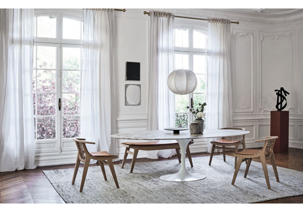 Klismos conçu par Antonio Citterio pour Knoll est un petit fauteuil avec structure en chêne naturel ou noir. Les assises et les dossiers sont en corde de coton naturelle ou noire assortie à la structure. Le coussin est optionnel, en cuir naturel ou cuir noir.