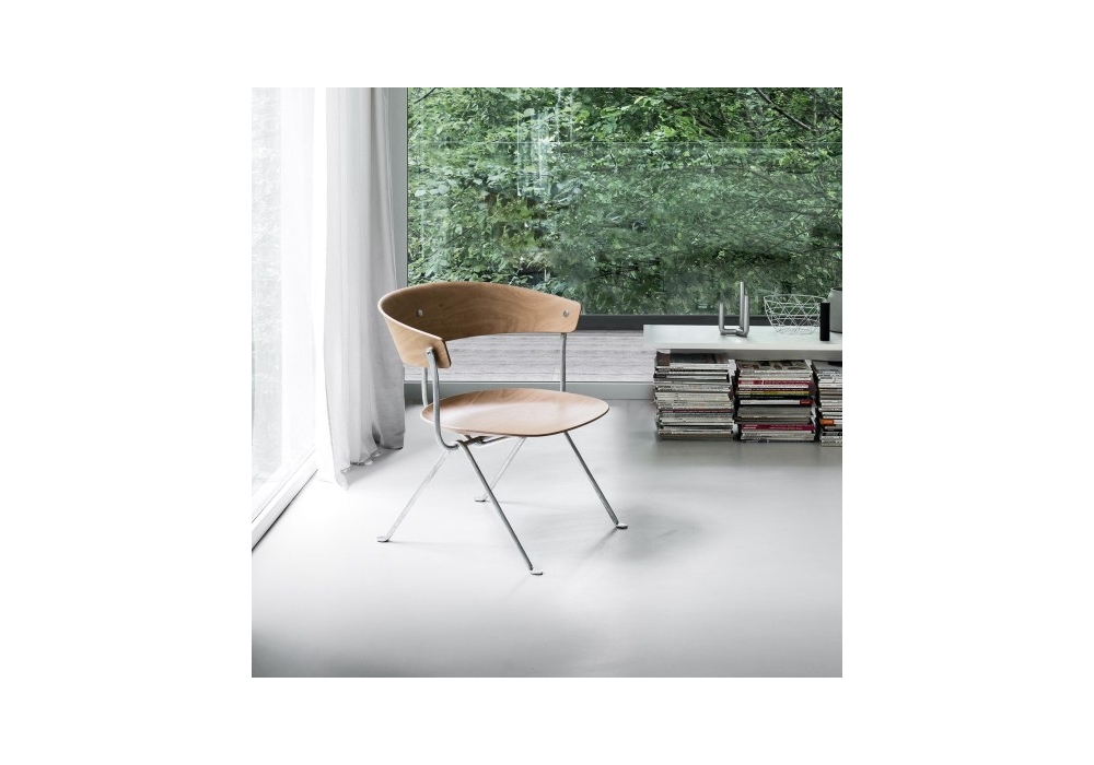 Officina conçu par Ronan & Erwan Bouroullec pour Magis est un fauteuil bas avec structure en fer forgé, galvanisé à chaud ou peint en polyester, assise et dossier en contreplaqué de hêtre. Disponible en différentes finitions.