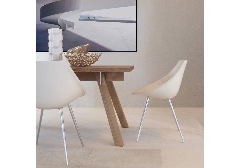 Lagò Cuoio conçu par Philippe Starck pour Driade est un fauteuil avec pieds en aluminium anodisé et coque en polyuréthane rigide entièrement recouverte de cuir de couleur gris tourterelle, marron, blanc ou noir. Usage interne uniquement.