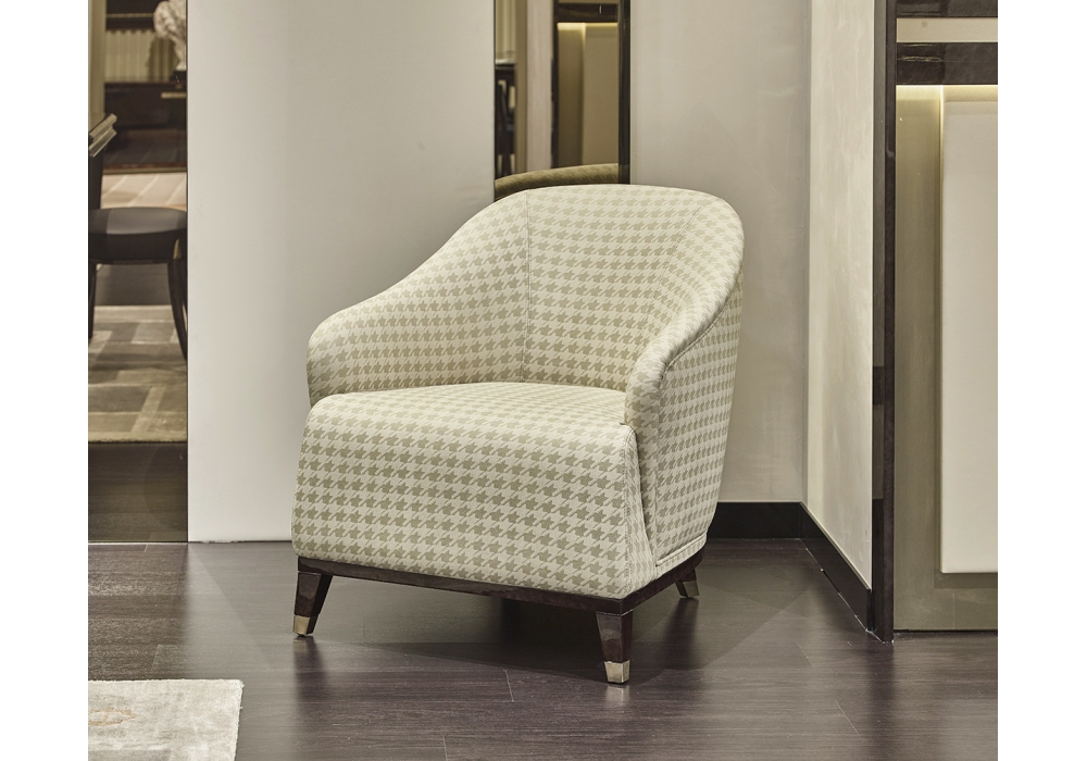 Jolly produit et conçu par Turri est un petit fauteuil avec structure en bois multicouche et massif, rembourré en mousse de polyuréthane à densité variable et revêtement en différents tissus ou cuirs inamovibles. Pieds en MDF et bois massif finition polyester brillant décoré à la main. Les pieds ont des parties métalliques en finition or clair ou bronze.