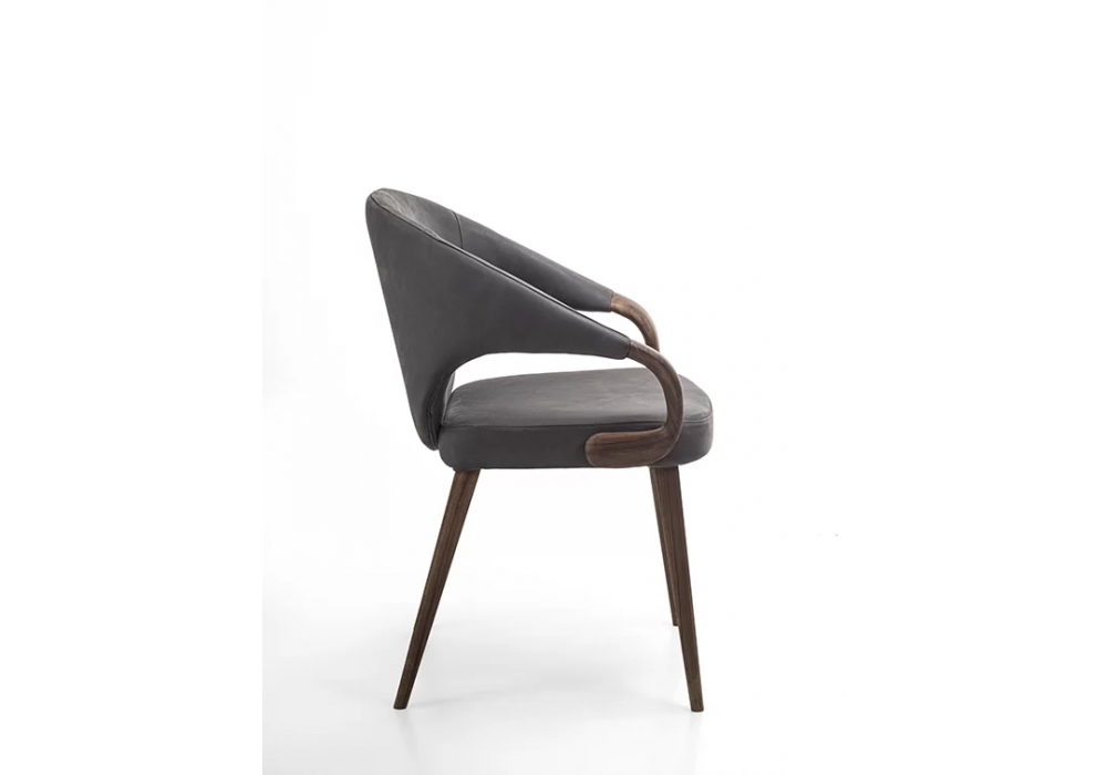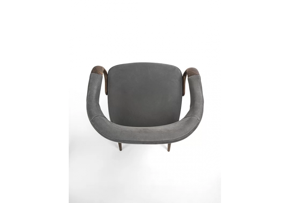 Theory conçu par Fabio Di Bartolomei pour Riva 1920 est un petit fauteuil réalisé avec pieds et accoudoirs en bois massif et assise et dossier recouverts de cuir ou de tissu.