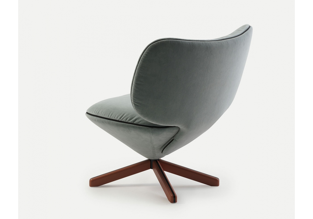 Tortuga conçu par Isaac Piñeiro pour Sancal est un petit fauteuil avec pieds en acier et frêne teinté, coque rembourrée recouverte de tissu ou de cuir. Disponible en différentes finitions.