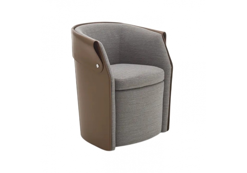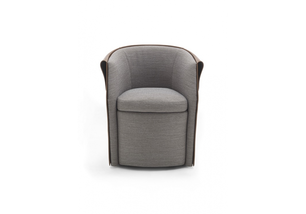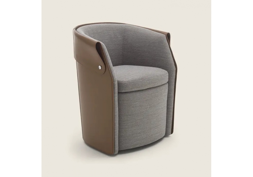 Ozzy conçu par Patrick Norguet pour Flexform est un petit fauteuil de salle à manger avec une structure rembourrée et une base en métal et mousse de polyuréthane moulée, recouverte d’un tissu laminé protecteur. Le dossier extérieur est en métal recouvert de cuir sellier, disponible en différentes couleurs. Le coussin d’assise est en duvet d’oie stérilisé. Revêtement en tissu ou cuir. Roulettes pivotantes.