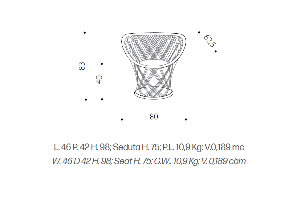 Pavo by Driade is an easy chair with structure in painted steel covered with wicker in brown colour and polyurethane foam fixed cushion with black leather cover. Indoor use only.