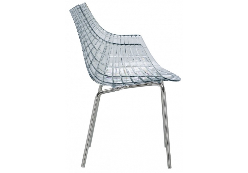 Meridiana conçu par Christophe Pillet pour Driade est un fauteuil avec structure en acier chromé et coque en polycarbonate blanc ou noir, polycarbonate transparent : incolore ou fumé.