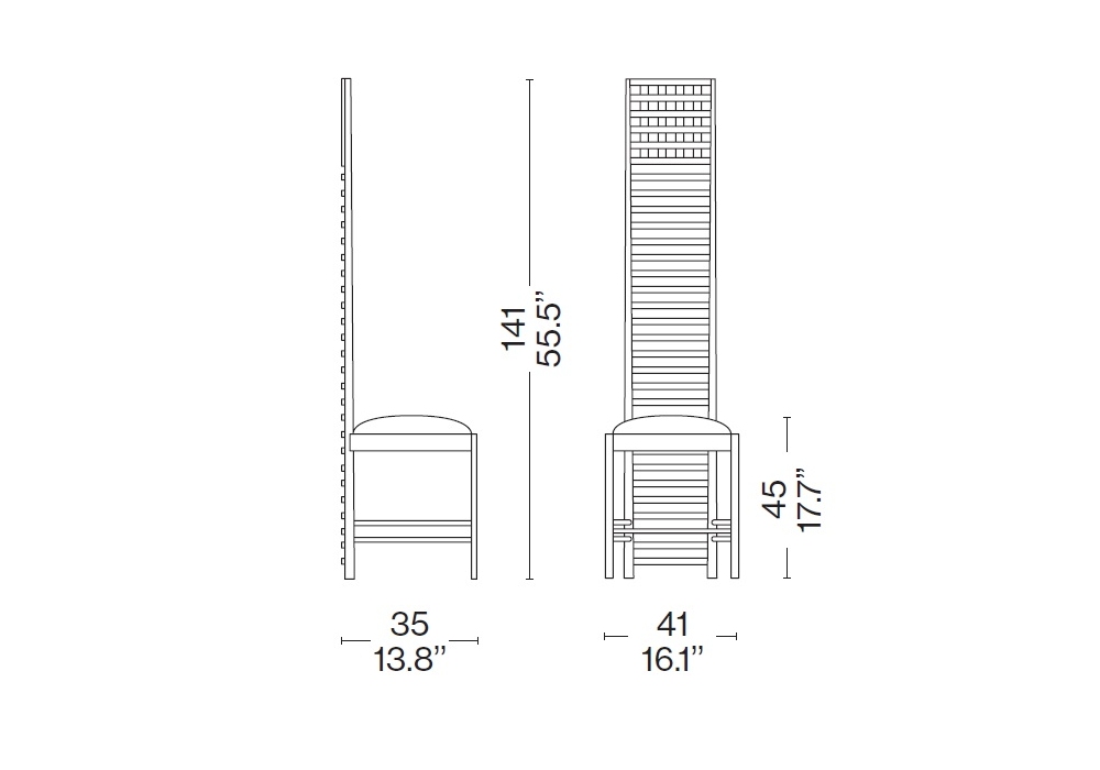 292 Hill House 1 conçu par Charles R. Mackintosh pour Cassina est un fauteuil réalisé avec une structure en frêne teinté noir et un revêtement d'assise en velours spécial.