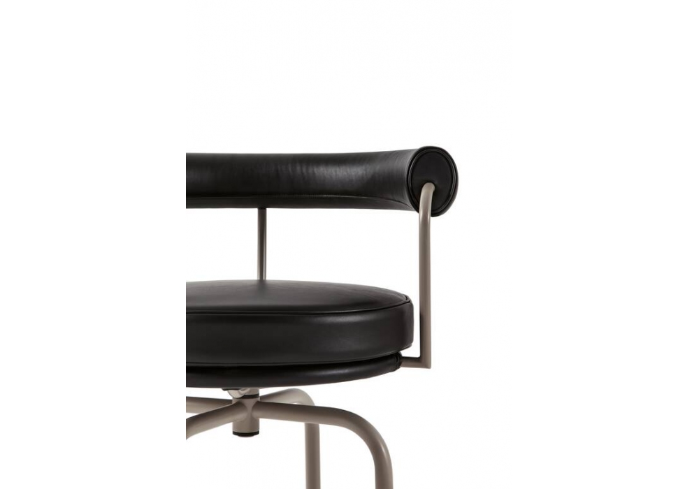 7 Fauteuil Tournant conçu par Charlotte Perriand pour Cassina est un petit fauteuil pivotant à 4 ou 5 pieds, réalisé avec une structure chromée ou peinte et un revêtement en tissu ou cuir.