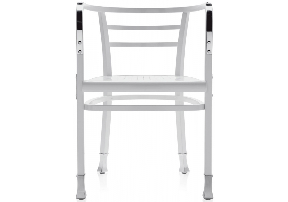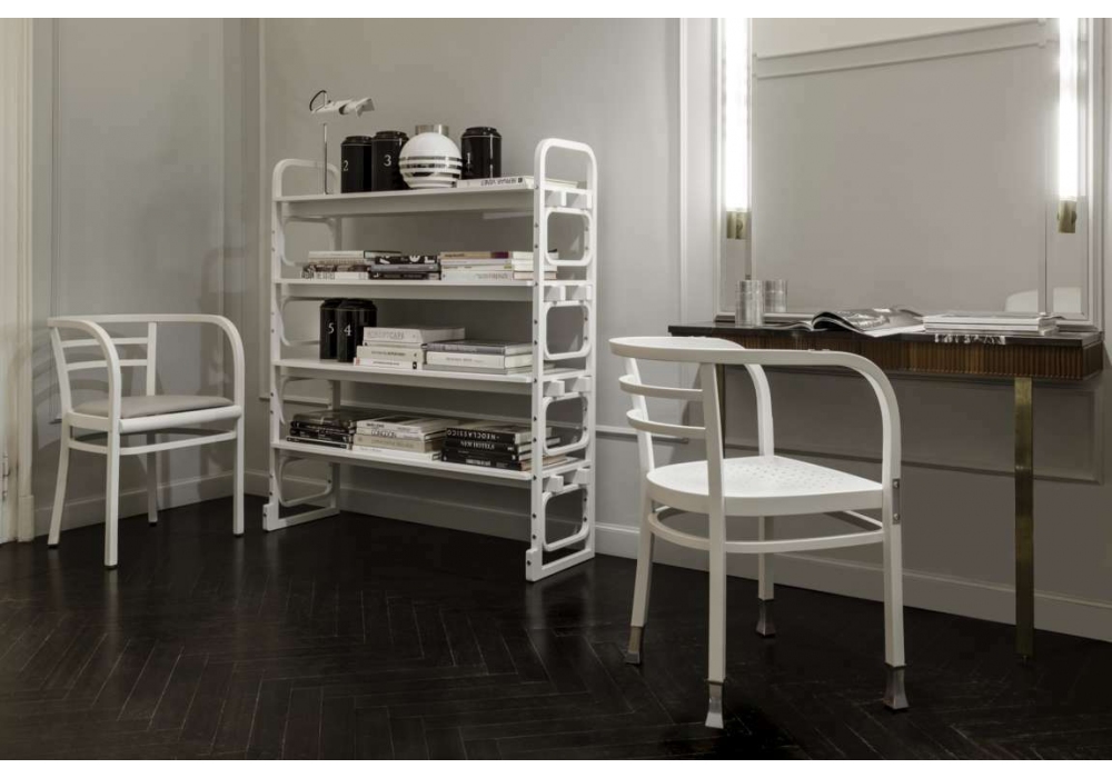 Postsparkasse conçu par Otto Wagner pour Gebrüder Thonet Vienna est un fauteuil en hêtre courbé, disponible en différentes finitions. Assise en contreplaqué perforé. L'ajout de détails en aluminium est également disponible.