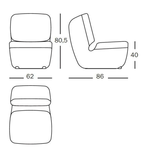 Nimrod conçu par Marc Newson pour Magis est un fauteuil avec structure en polyéthylène blanc, coussins en mousse de polyuréthane, recouvert de tissu, disponible en différentes couleurs.