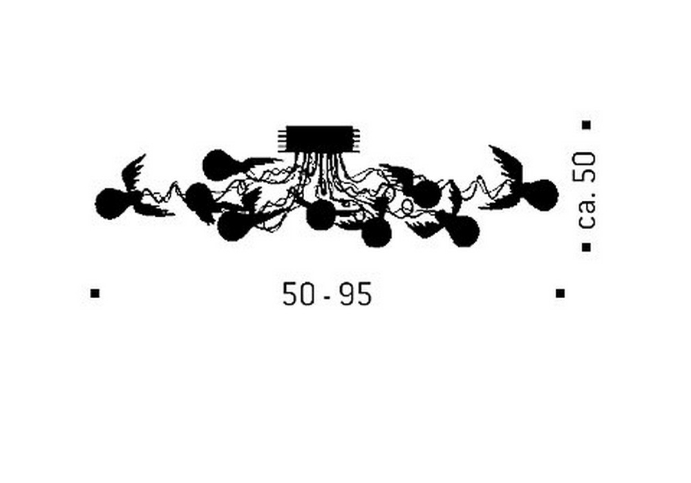 Birdie's Nest est une plafonnier signé par Ingo Maurer. Métal, ailes en plumes d’oie, dix ampoules à bas voltage. Transformateurs intégrés, câbles transparents.