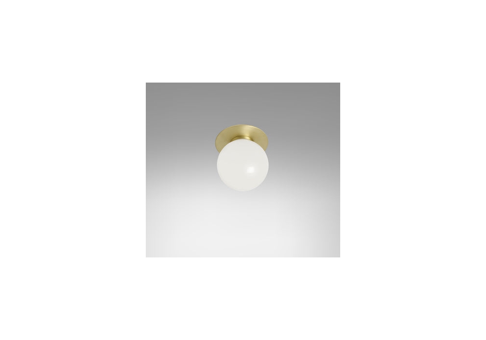 Mezzo Flush conçu par CTO Lighting est un plafonnier en laiton satiné ou nickel poli et abat-jour en verre opale. Disponible en 2 dimensions.