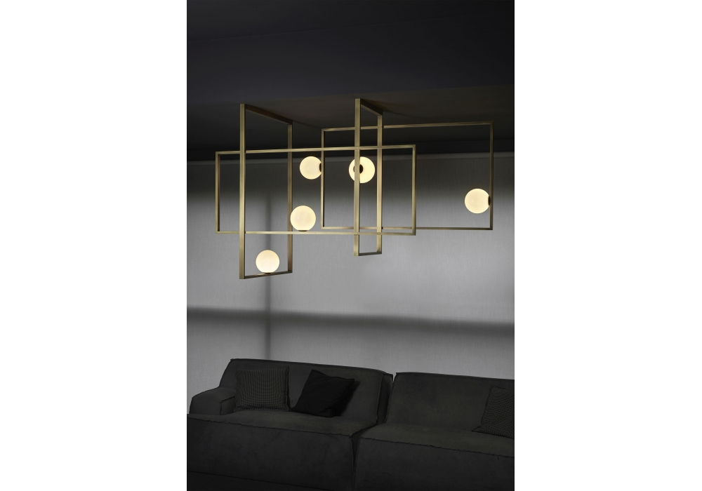Mondrian Glass conçu par Massimo Tonetto pour Venicem est un plafonnier à lumière diffuse avec diffuseur en verre de Murano soufflé blanc. Structure en différentes finitions.