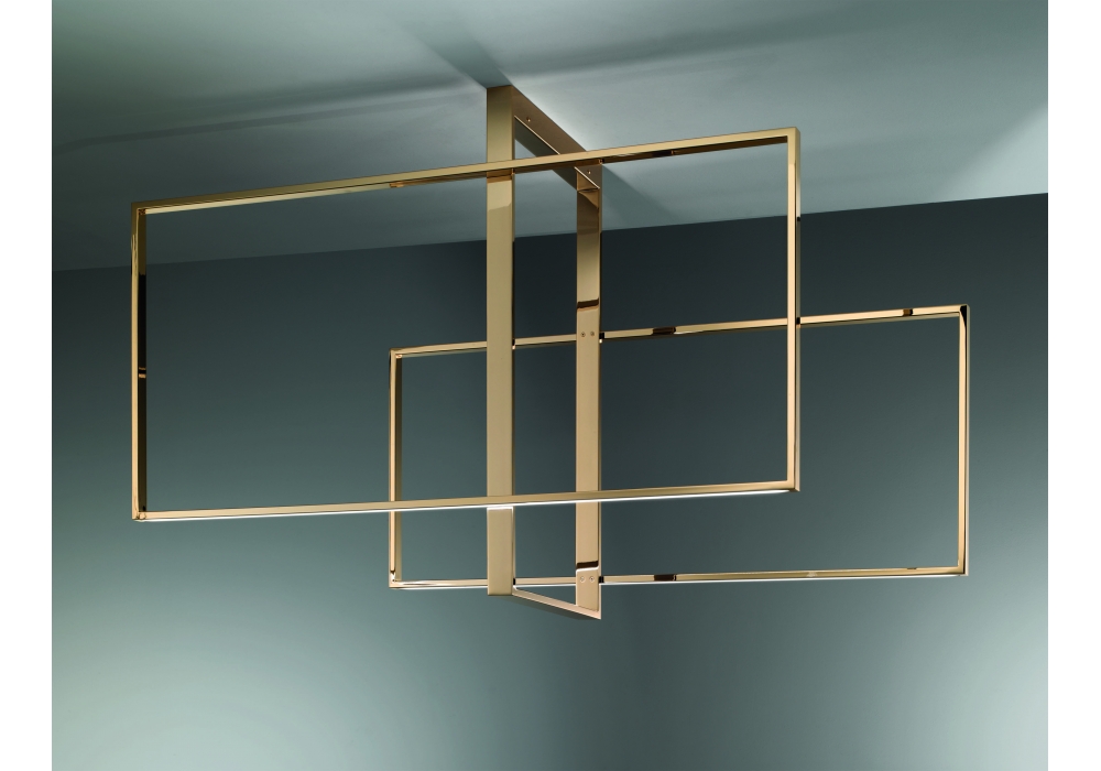 Mondrian Led conçu par Massimo Tonetto pour Venicem est une belle plafonnier avec lumière directe et indirecte. Structure en laiton naturel, laiton poli ou nickel noir.