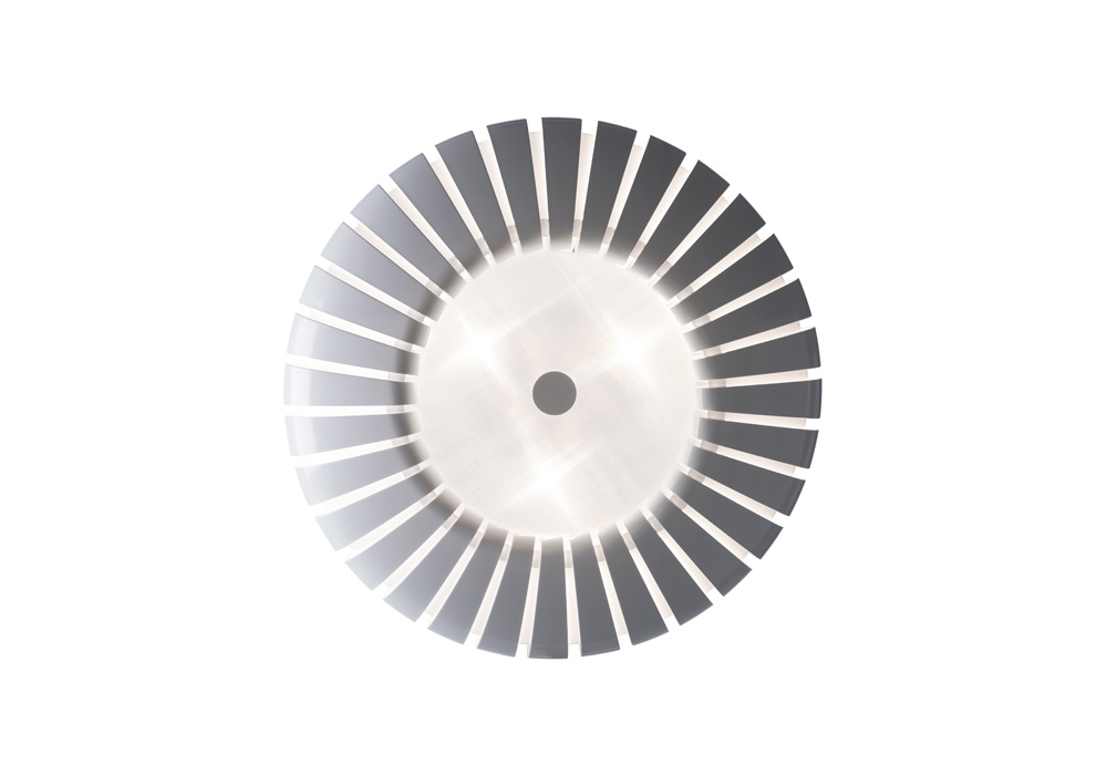 Maranga C conçu par Christophe Mathieu pour Marset est un plafonnier en polycarbonate et métal chromé.