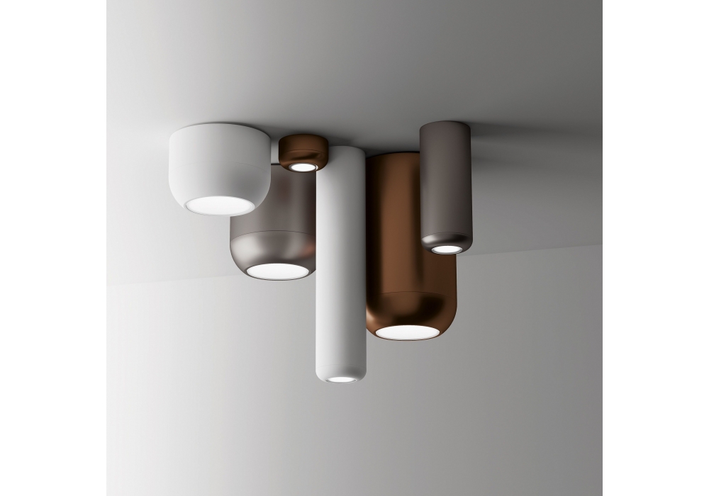 Urban conçu par Dima Loginoff pour Axo Light est un plafonnier à LED dimmable en aluminium disponible en différentes couleurs. Indice de protection IP 20.