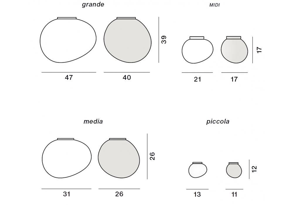 | Dimensions | 47 x 40 x H 39 cm (Gregg Large); 31 x 26 x H 26 cm (Gregg Medium); 21 x 17 x H 17 cm (Gregg Midi); 13 x 11 x H 12 cm (Gregg Small). |