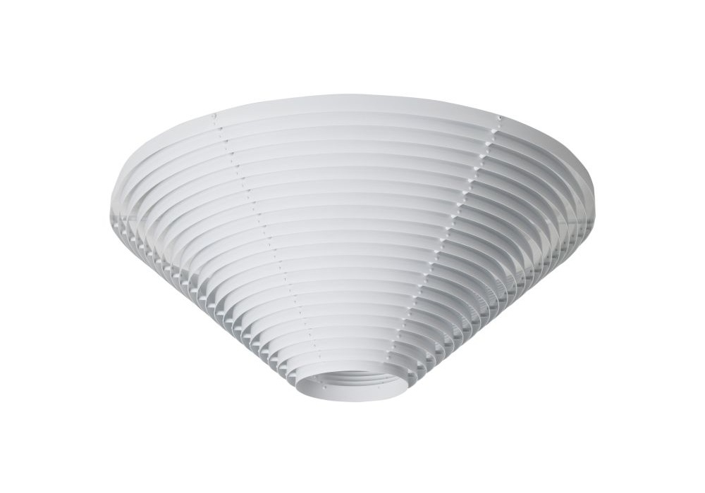 A622 conçu par Alvar Aalto pour Artek est un plafonnier réalisé avec un abat-jour en acier lamellaire riveté à la main, finition laquée blanche. Disponible en différentes dimensions.