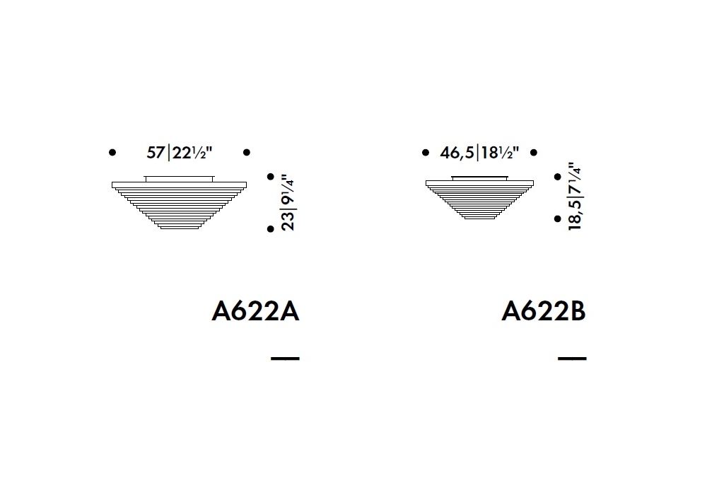 | Dimensions | A622A_ Ø 57 x H 23 cm; A622B_ Ø 46.5 x H 18.5 cm |
