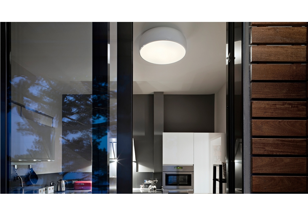 Smithfield Pro conçu par Jasper Morrison pour Flos est un plafonnier à lumière directe. Corps en aluminium. Diffuseur moulé par injection en méthacrylate opale. Fixation murale et plafonnier en acier. Variateur d'intensité (poussoir ou DALI) inclus. Ampoule incluse.