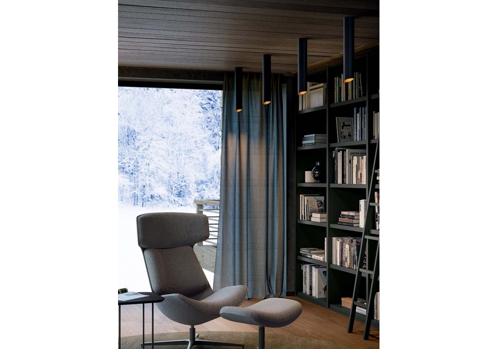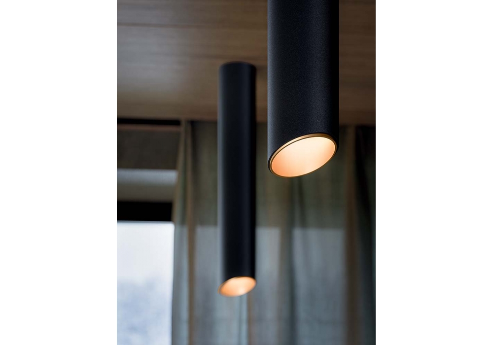 Slice conçu par Enrico Franzolini pour Quadrifoglio Group est un plafonnier avec structure en aluminium peint, disponible en différentes finitions. Rosace de plafond en métal peint noir. Aussi disponible en 2 dimensions.