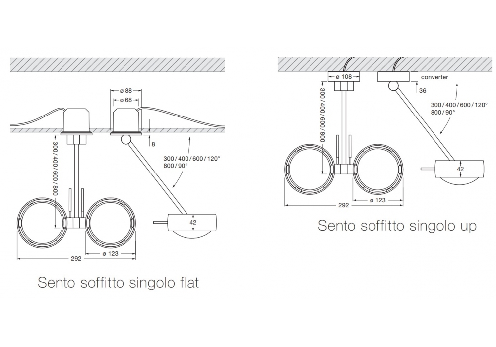 Sento Doppio conçue par Occhio est une plafonnier à LED en aluminium, plastique, verre et plastique optique avec base plate pour montage sur boîte souterraine ou base haute avec alimentation incluse. Dimmable via « contrôle sans contact » ou via Occhio air. Disponible en différentes finitions, dimensions et modèles.