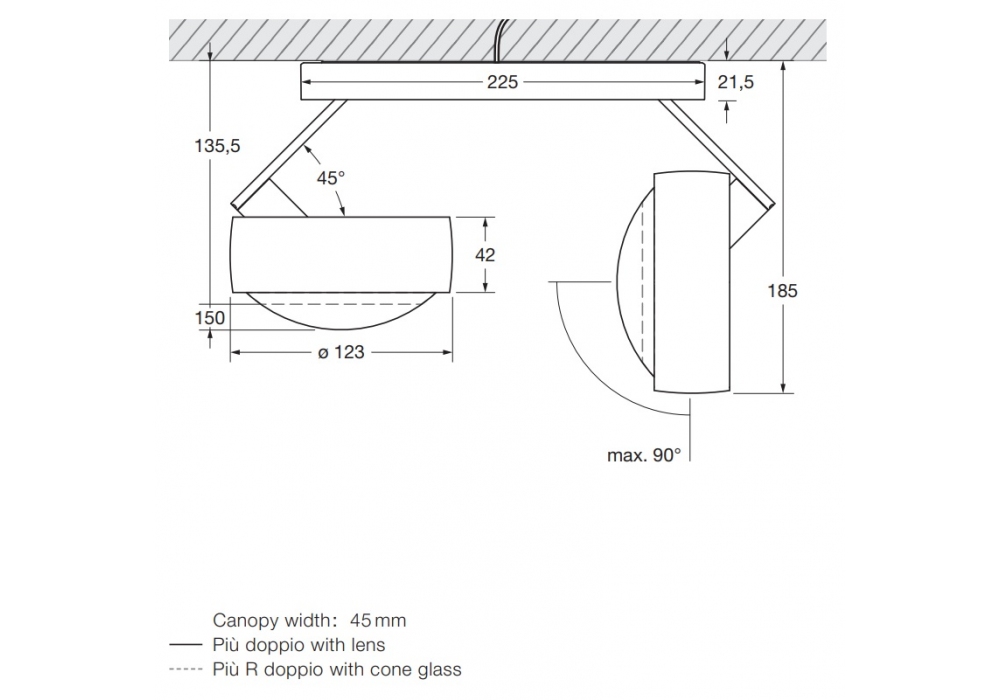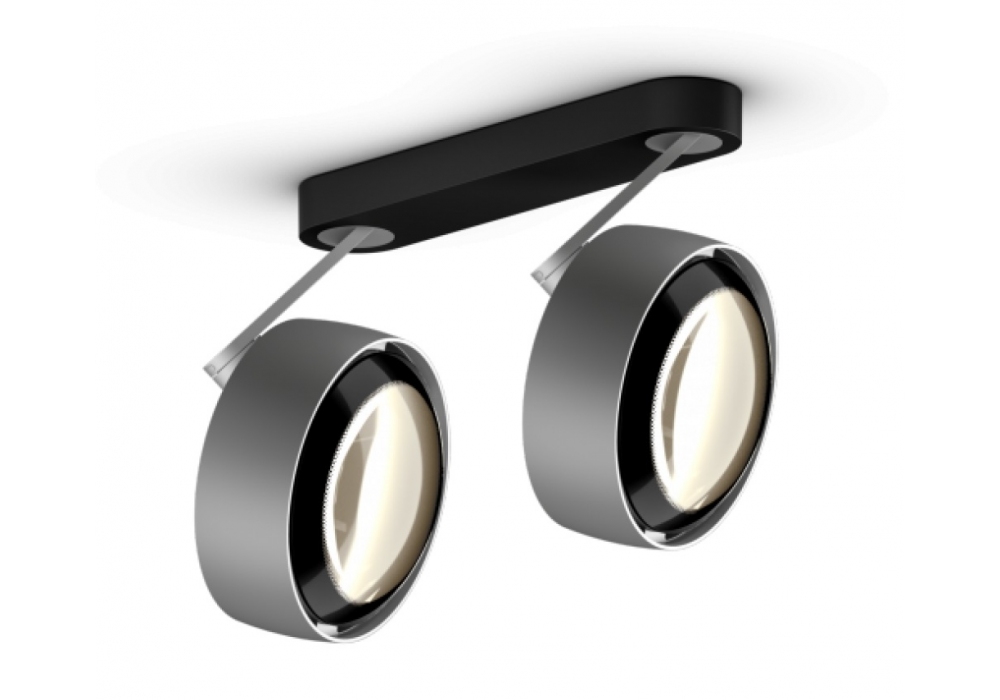 Più Alto Doppio 3D conçu par Occhio est un projecteur à LED avec deux diffuseurs à émission lumineuse unilatérale avec optique à lentille (Più) ou en verre conique plat avec lentille interne (Più R). Fabriqué en aluminium, laiton, acier chromé ou peint, plastique optique et verre. Disponible en différentes finitions et modèles.