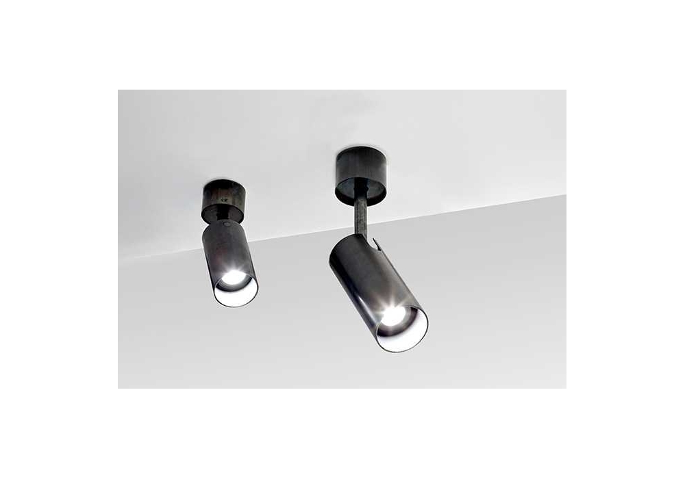 Sophisticated Spotlight conçu par Koen Van Guijze pour Serax est un plafonnier, avec baldaquin circulaire et structure articulée cylindrique, en acier bleu peint en noir. La source lumineuse utilisée est LED ou halogène avec couplage GU10.