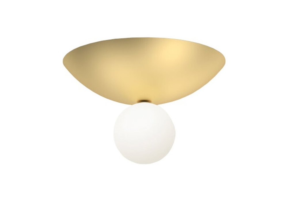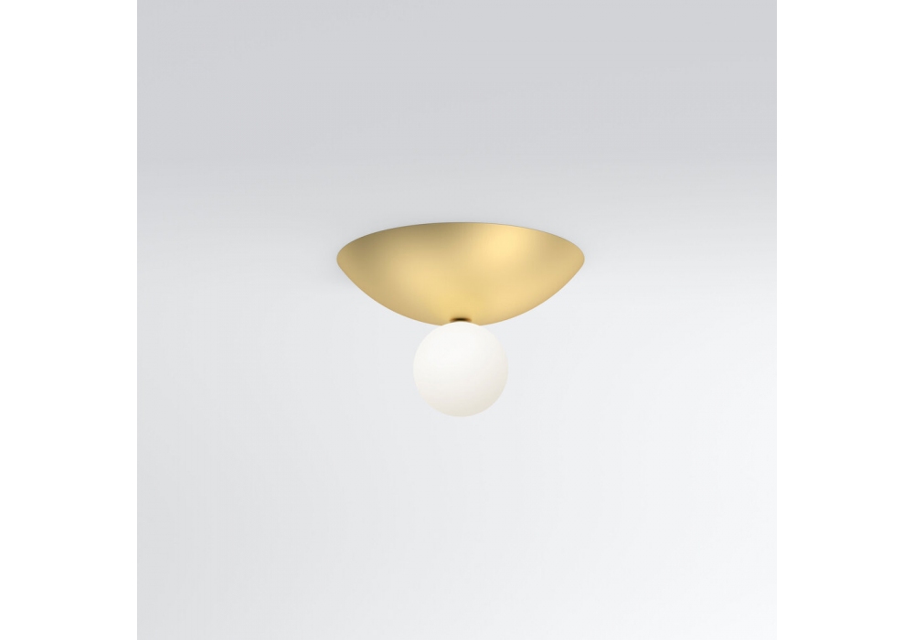 Up and Down conçu par Atelier Areti est un plafonnier en laiton brossé et diffuseur en verre blanc. Disponible en différents modèles.