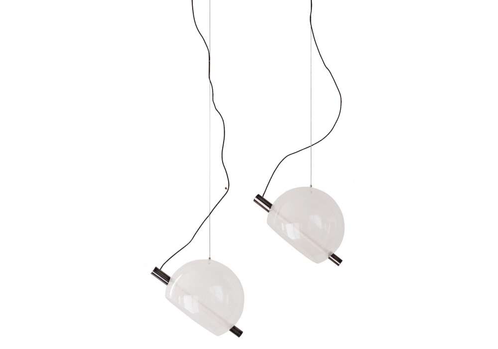 Cody conçu par STC Studio pour Cattelan Italia est un plafonnier LED avec abat-jour en verre soufflé transparent ou fumé. Plaque de plafond en acier chromé noir. Disponible avec télécommande et variateur. Disponible en plusieurs configurations.