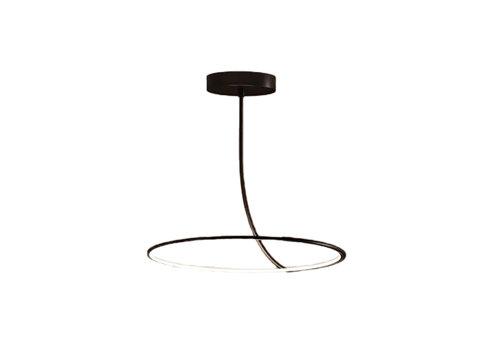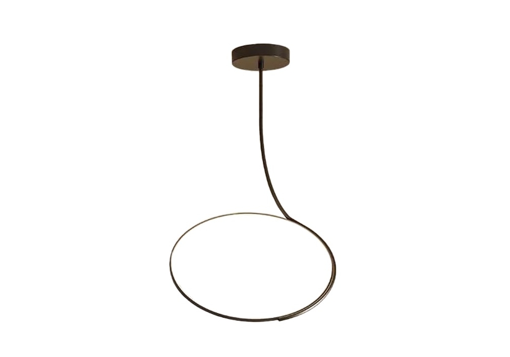 Poise conçu par Robert Dabi pour Kundalini est un plafonnier avec tube flexible recouvert de tissu technique, diffuseur et structure en métal noir mat. Il est possible de déplacer l'anneau diffuseur grâce au tronçon flexible entre la tige et ce dernier.