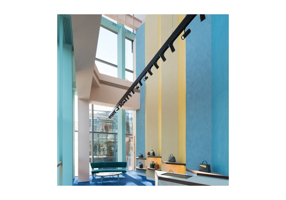 Elba Track conçu et produit par Nemo Studio est un plafonnier sur rail avec corps de lampe cylindrique en aluminium peint en différentes finitions. La source lumineuse adoptée est du type LED qui peut être graduée dans différentes gradations de lumière.
