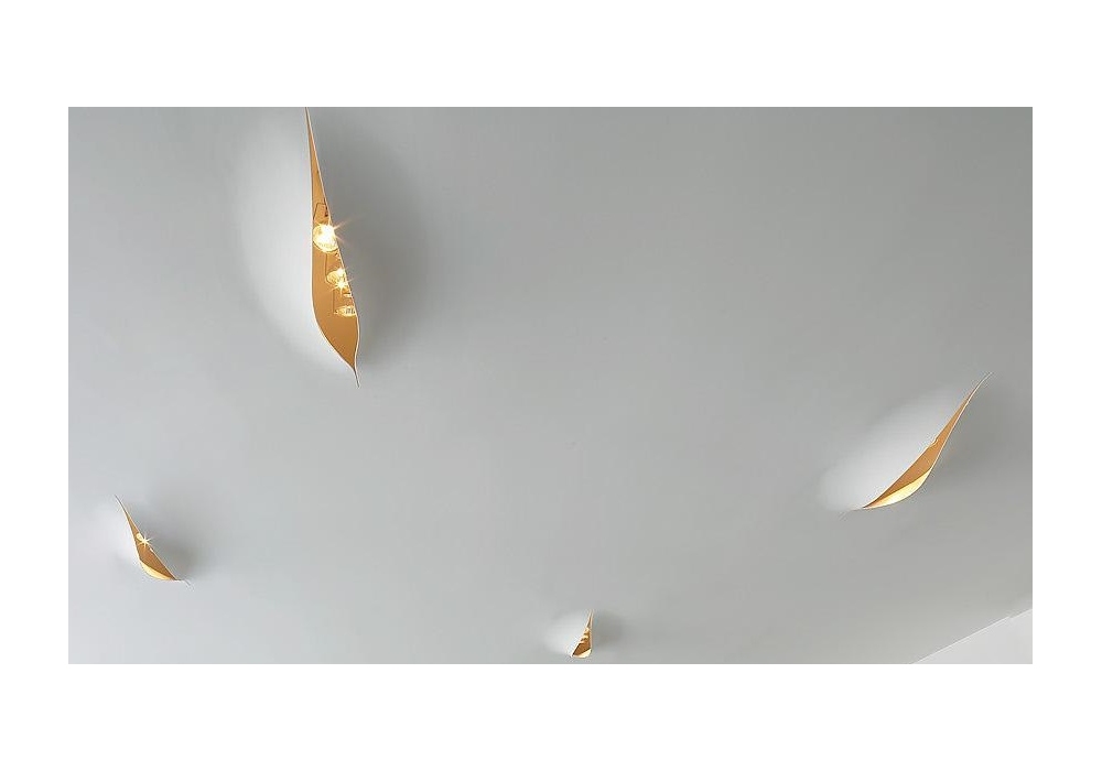 Schlitz Up conçu et produit par Ingo Maurer est un plafonnier LED avec structure en aluminium et fibre de verre. Il convient à une installation encastrée dans les faux plafonds. Les ampoules ne sont pas couvertes (pas de verre diffuseur) elles sont donc visibles depuis la fente.