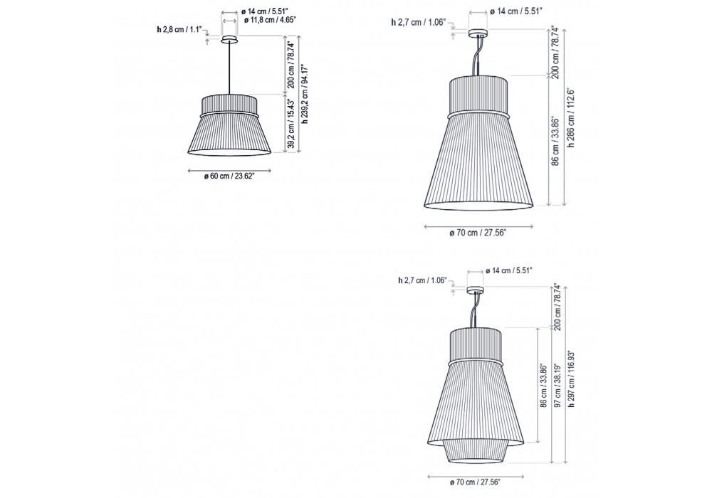 | Diamètre de abat-jour | Ø 60 cm; Ø 70 cm; Ø 70 cm. |