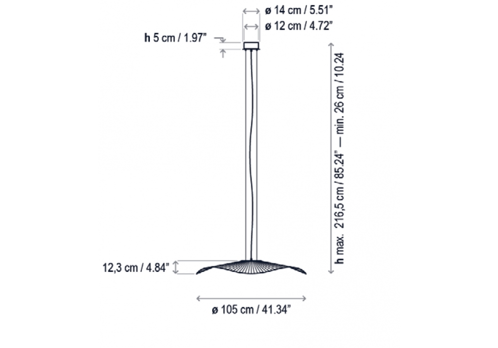 | Dimensions | Ø 105 x H 12,3 cm Hmax 216 cm; Ø 105 + Ø 76 x H 15,7 cm Hmax 222 cm. |