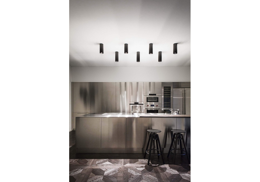 Pipe PL conçue par Olev est un plafonnier en fer, disponible en différentes finitions.