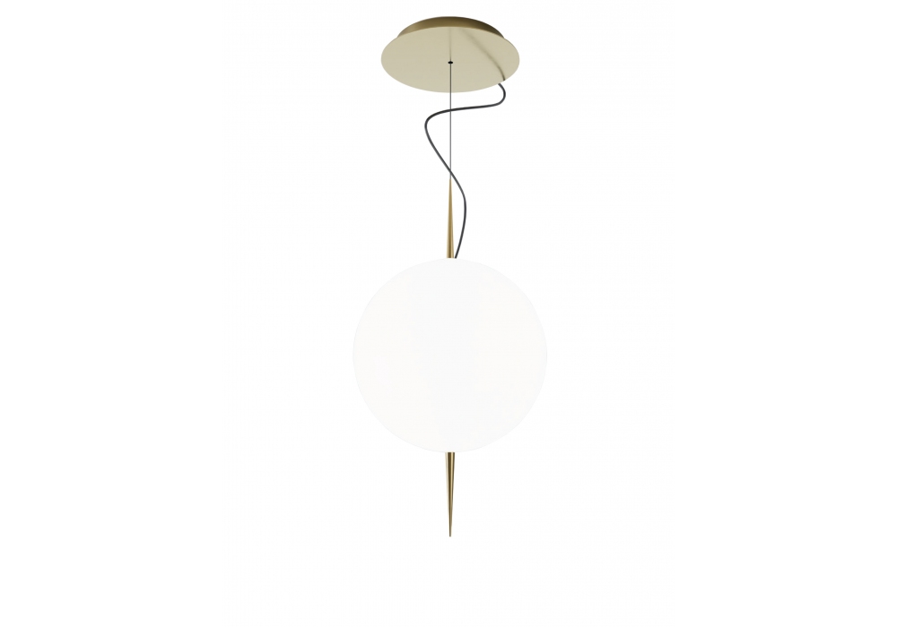Ad-Astra conçue par Marco Lavit pour Living Divani est un plafonnier avec une structure portante en laiton tubulaire obtenu au tour. Le diffuseur a une forme sphérique et est de couleur blanc opalin et abrite une source de lumière LED avec possibilité d'un système de variateur réglable à distance. Ad-Astra est disponible en différentes finitions.