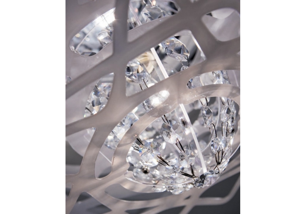 Aurora conçu par Nigel Coates pour Slamp est un plafonnier entièrement en cristaux Plainflex®/97. Le diffuseur est constitué de plusieurs éléments de cristaux Plainflex®/97 qui protègent une source lumineuse LED à filament dimmable. Aurora est disponible en différentes finitions.