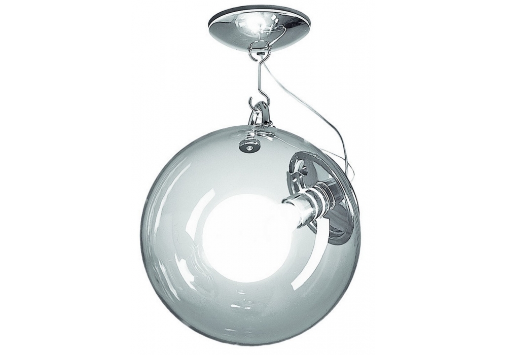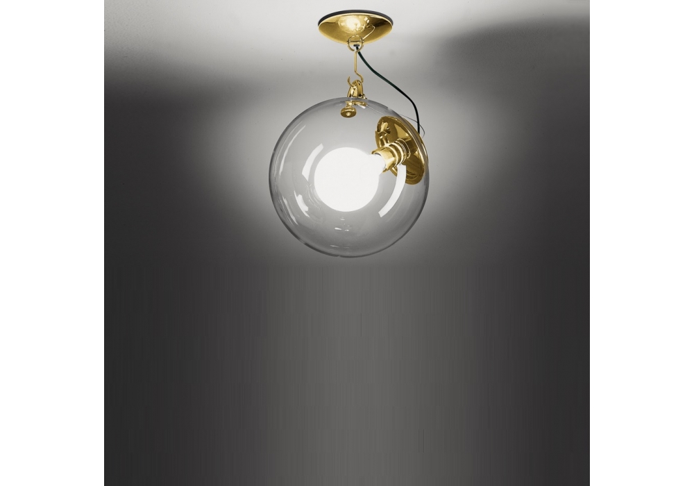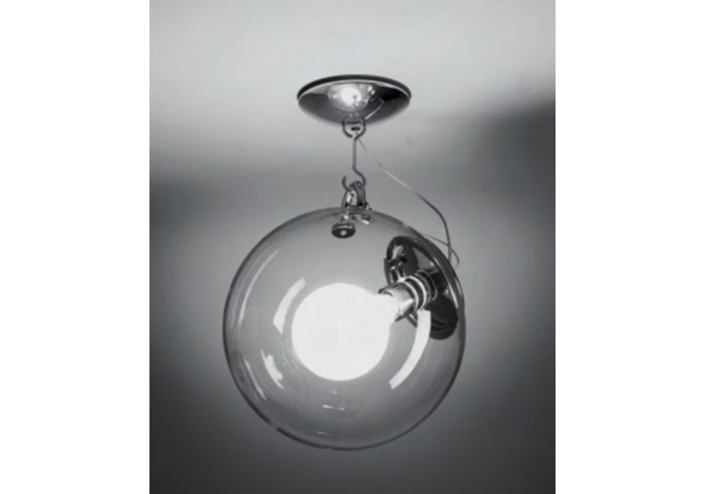 Miconos conçu par Ernesto Gismondi pour Artemide est un plafonnier avec structure portante en acier peint. Le diffuseur est de forme sphérique et réalisé en verre soufflé transparent et adopte une source de lumière LED à intensité variable. Miconos est disponible en différentes finitions.