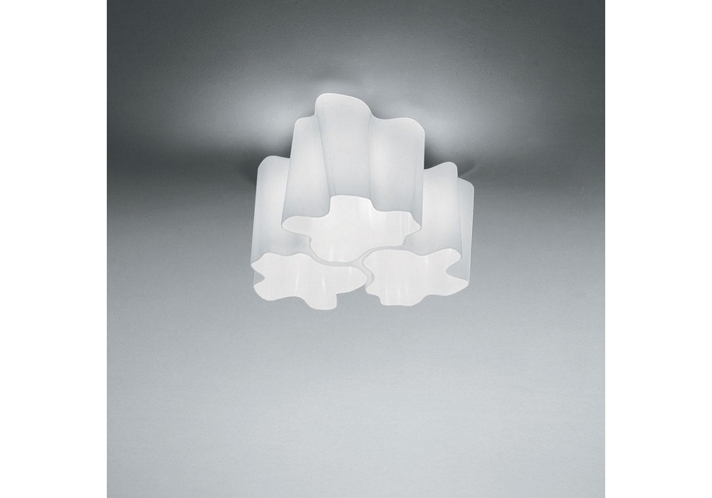 Logico Mini 3x120° diseñada por Michele De Lucchi, Gerhard Reichert para Artemide es una lámpara de techo con estructura portante de aluminio. El cuerpo de la lámpara se compone de tres elementos de vidrio soplado de color seda brillante que protegen las fuentes de luz LED regulables.