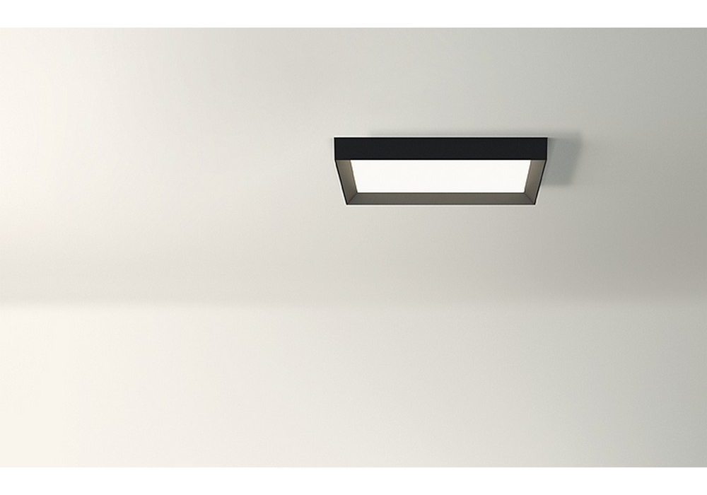 Up Square conçu par Ramos & Bassols pour Vibia est un plafonnier de forme carrée avec structure portante et corps de lampe en aluminium peint. Le diffuseur est en méthacrylate et masque une source lumineuse LED dimmable. Up Square est disponible en différentes versions et finitions.