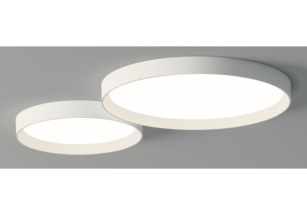 Up Double Ring conçu par Ramos & Bassols pour Vibia est un plafonnier de forme circulaire avec une structure porteuse et un corps de lampe en aluminium peint. Les diffuseurs sont en méthacrylate et protègent les sources lumineuses LED à intensité variable. Up Double Ring est disponible en différentes finitions, nuances de sources lumineuses et dimmabilité.