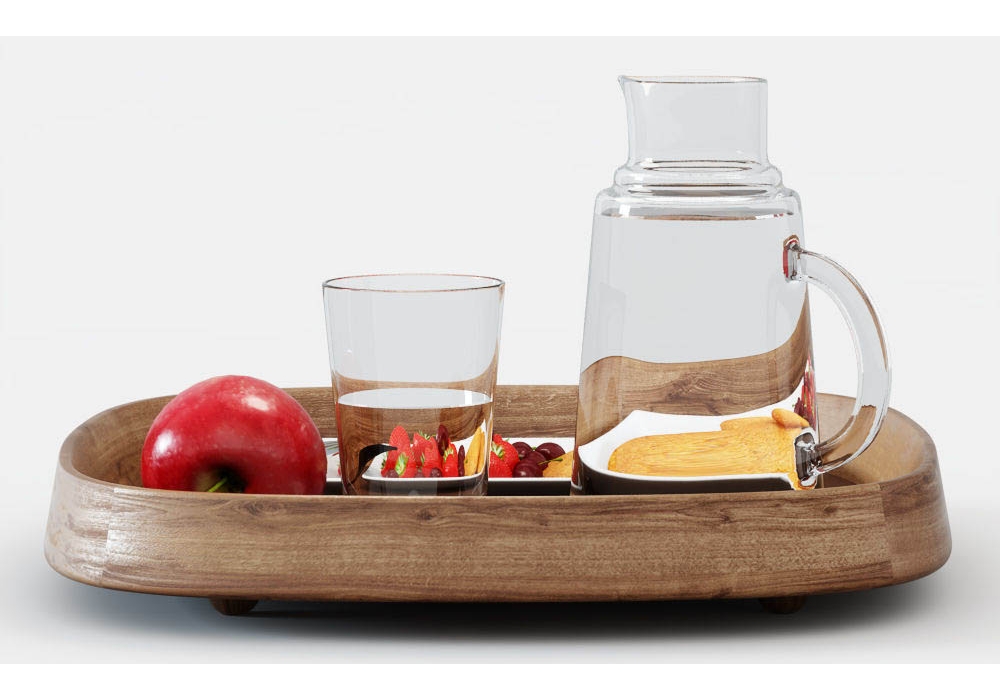 Mix Tray conçu par Carlo Ballabio pour Porada est un plateau disponible en noyer canaletta en différentes finitions et rêvetement en cuoietto en différentes couleurs.